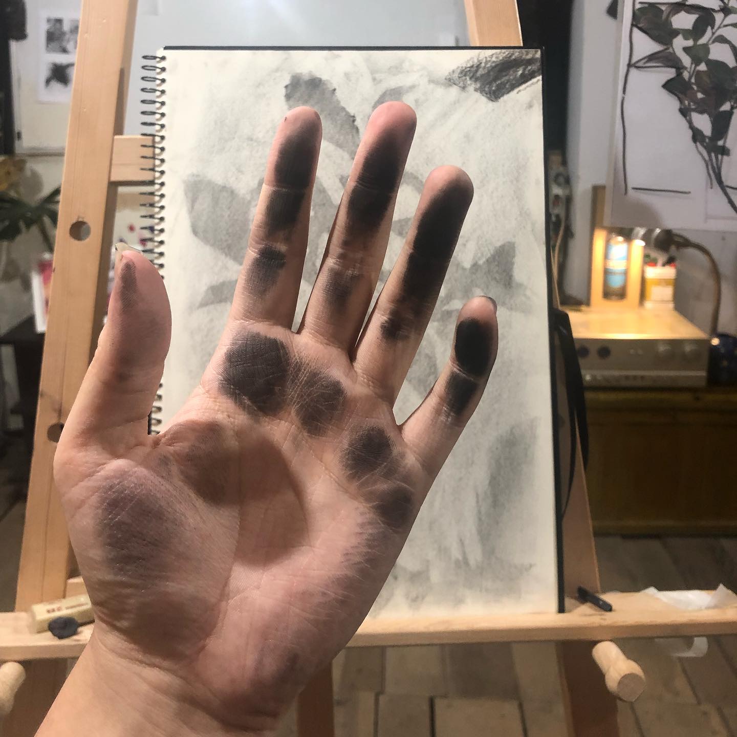 突然覺得哲學對我好重要,身為高敏感的人常常有豐富到溢出來的想法,哲學的思考和書寫可以梳理出一些脈絡。而我發現畫畫更是一件充滿哲學意義的事,雖然是在畫圖,但腦中的想法會持續在運作,冒出不少哲學的思考,真的好有趣啊。看得很細、想得很細的特質,說不定我也蠻適合畫畫的哈哈。 (炭筆把手弄的好黑真的好讚)