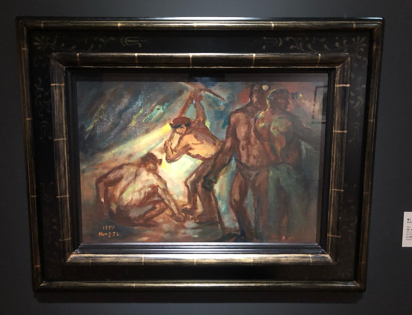 很喜歡洪瑞麟這位畫家兼礦工的筆觸和理念。身處在未知黑暗的礦坑裡,每天不斷遭遇危險的處境,生與死的問題浮現眼前,因此這是一份辛勞且需要被嚴肅看待的工作,如此的精神被洪瑞麟詮釋為「宗教性」,並且那也是一種「善」。 礦坑充滿著煤炭與汗水,礦工的辛苦和勞動的身軀,在洪瑞麟眼中是如米開朗基羅般的偉大藝術,他於是用墨水在燈光微弱的礦坑裡作畫。 以「掘光而行」為主題,會發現洪瑞麟有關礦坑的油畫作品,如何在一片黑暗中凸顯光亮,將光明與黑暗、生命和死亡兩種對立的屬性予以調和,呈現出和諧的畫作。