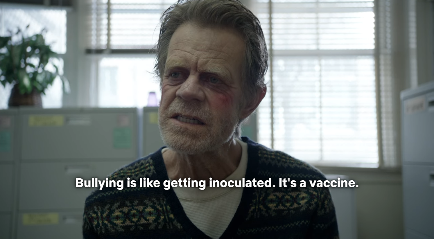 雖然Frank不是個討喜的角色,甚至很讓人討厭,但他常常有政治不正確的金句名言。例如:霸凌是生態系的一環,教導孩子復原力,就像注射疫苗一樣(S4E8)。打不死的蟑螂大概就是Frank的主要特色吧。