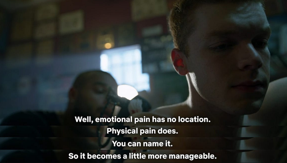 最喜歡的名言,伊恩因為親人過世而困,跑去刺青,希望能找到踏實感。紋身師說 “好吧,情感上的痛苦沒有位置。身體上的痛苦有。你可以說出它的名字。所以它變得更容易控制。”